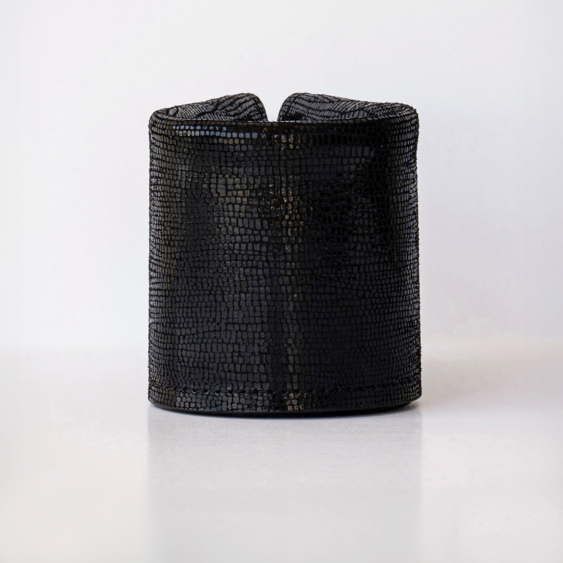 Black Glazed Lizard-Embossed Cuff (Cufflinks Sold Separately)